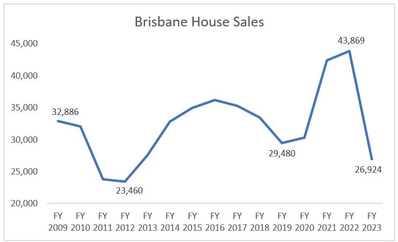 When you look at the RBA’s cash rate target data below, you can see that the market conditions are fairly similar for the 2008 - 2010 period as we’ve seen from 2018 - 2023 with a drop followed by a spike in rates, although we’ve seen a much larger increase in rates over the last year while there was a bigger drop post GFC. In figures, this was a drop from 7.25% in August 2008 to 3% in April 2009 then a spike to 4.75% in November 2010. Looking back at the graph for Brisbane’s number of sales, 2009 was a strong year (32,886) followed by a drop leading into 2011 & 2012 where the number of sales dropped to 23,460 in 2012.